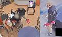 Horrific moment wheelchair user, 82, is STABBED in the neck and shoulder while eating in Taco Bell in crime-ridden LA, with suspect still on the loose.